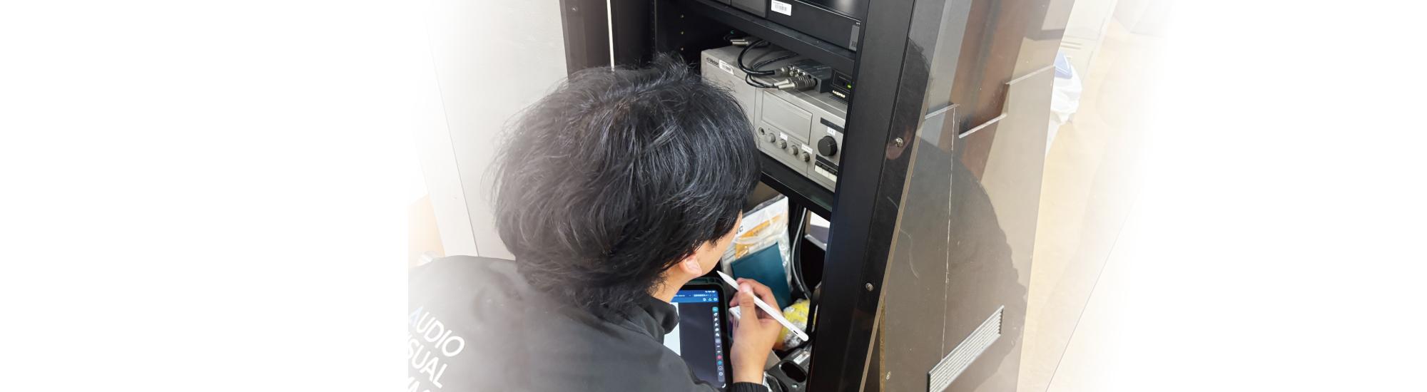 AV機器の提案から納入・施工・保守まで携わっています。また、それらに関係する図面の作成や機器の設定も重要な業務ですし、施工前の現地調査やお客様へのヒアリングも欠かせません。
