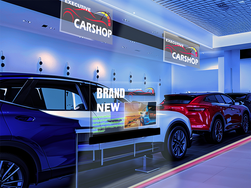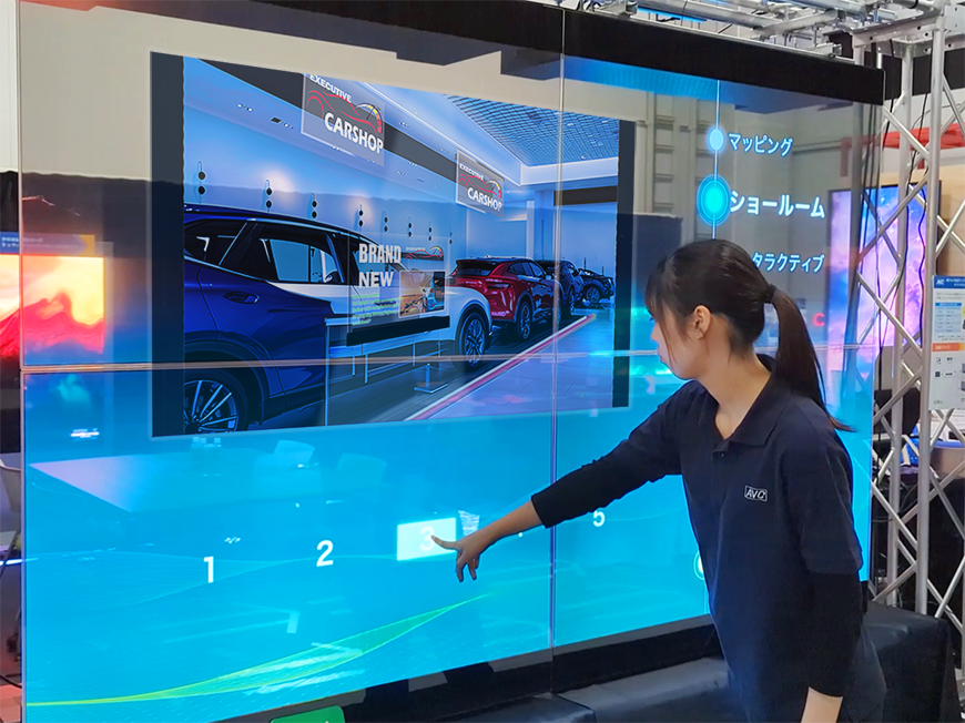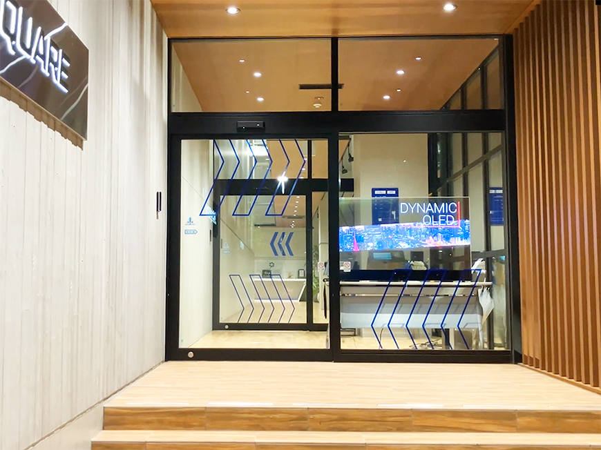 透過型ディスプレイの後方にLEDビジョンなど、別の映像表示装置を配置することで映像のレイヤーを構成する等、アイデア次第で様々な演出効果・訴求効果を創り出します。